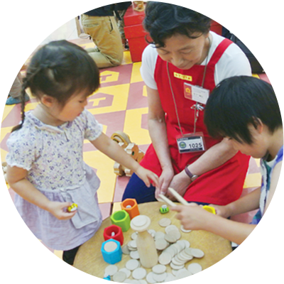 「木育」とは、木のおもちゃなどを通して、木への親しみや、感性豊かな心を育む活動のこと。